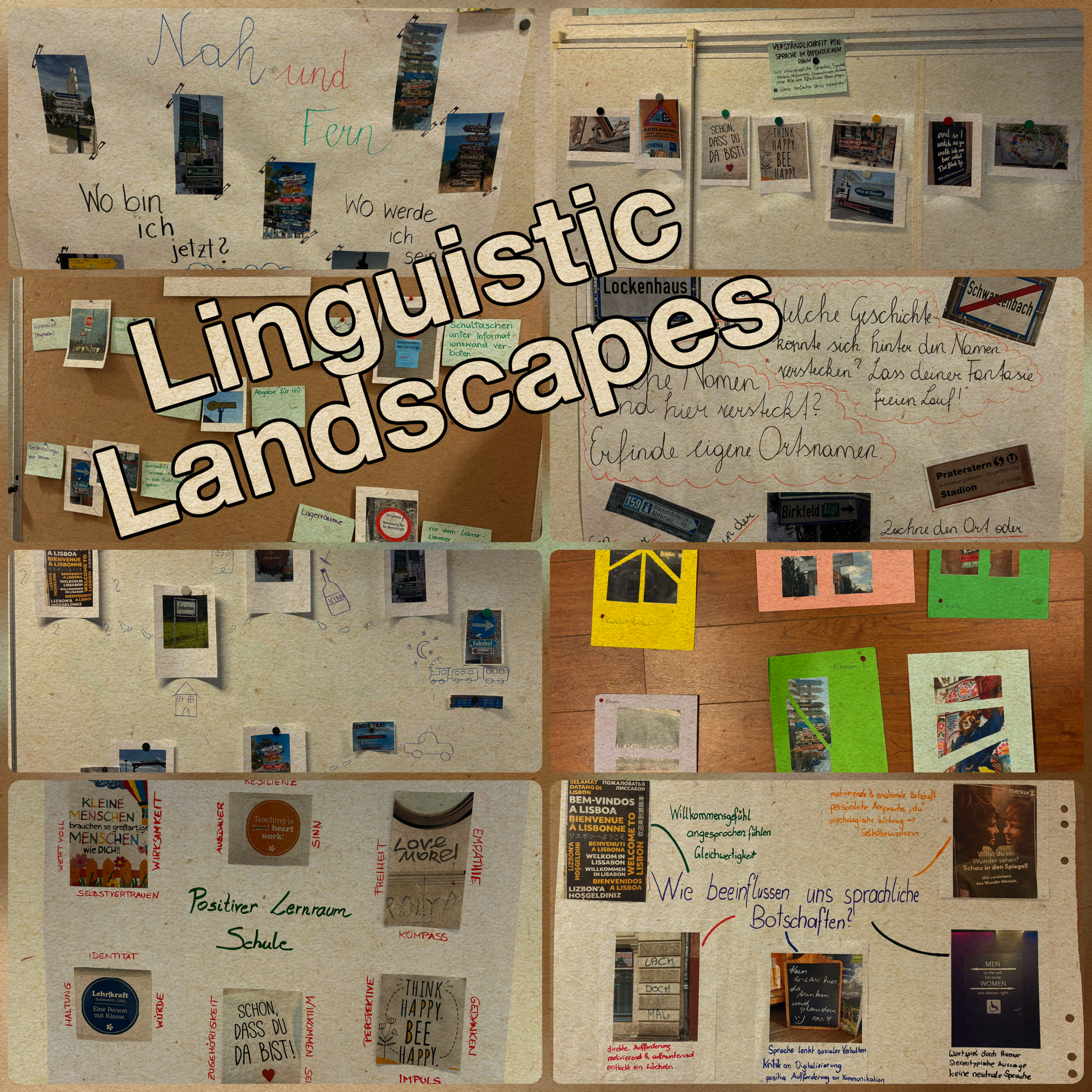 Ausgehend vom unmittelbaren Lebensumfeld entwickelten die Studierenden didaktische Projekte, die zeigen, wie Sprachunterricht an alltägliche Erfahrungen anknüpfen kann. Verkehrszeichen wurden beispielsweise in den Schulkontext übertragen, um Regeln und Miteinander sichtbar zu machen. Wegweiser dienten als Anlass für sprachliche und biografische Reflexionen, etwa zu Fragen nach dem eigenen Standort oder zukünftigen Perspektiven. Öffentliche Schilder wurden analysiert, um über Sichtbarkeit, Zugehörigkeit und sprachliche Adressierung ins Gespräch zu kommen.